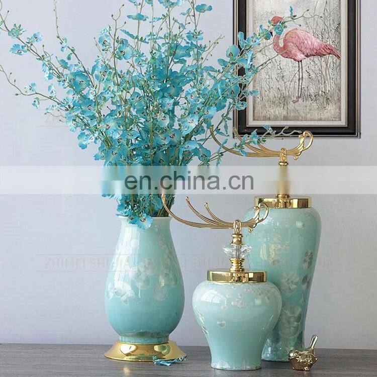 Home > Products > Flower Vase > Home Decorative Craft Gold Lid Blue Ceramic Porcelain Vase