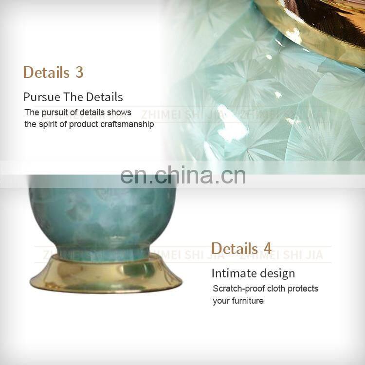 Home Decorative Craft Gold Lid Blue Ceramic Porcelain Vase