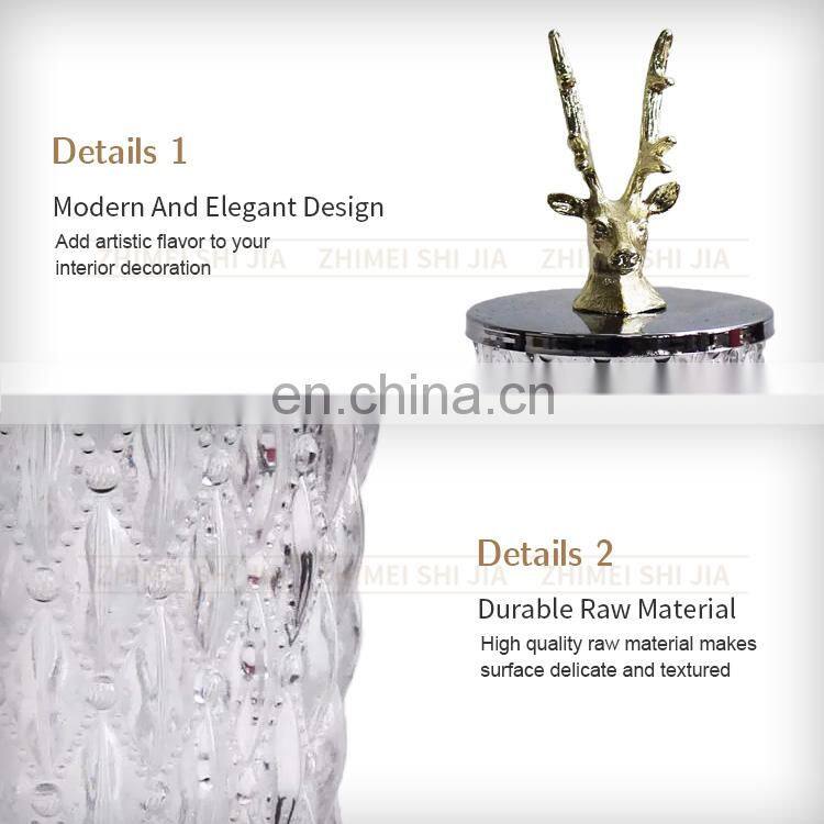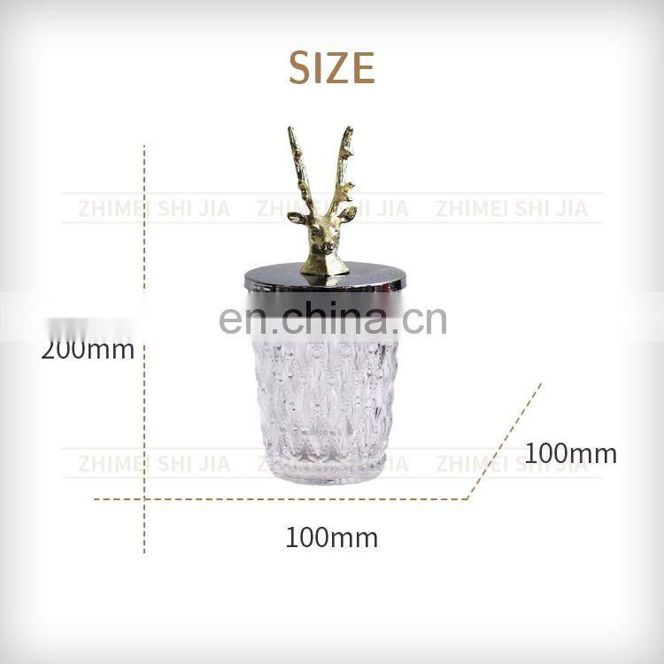 Small Home Decorative Golden Deer Metal Lid Glass Candy Jar