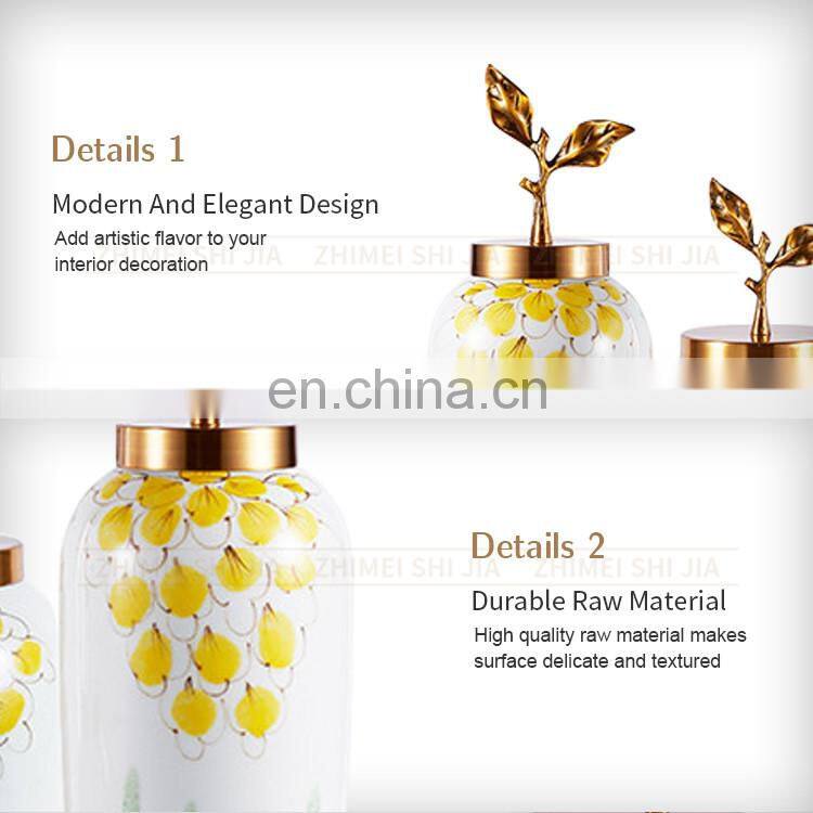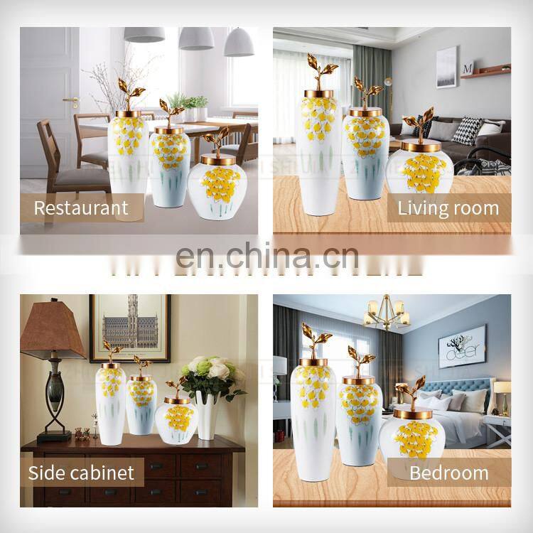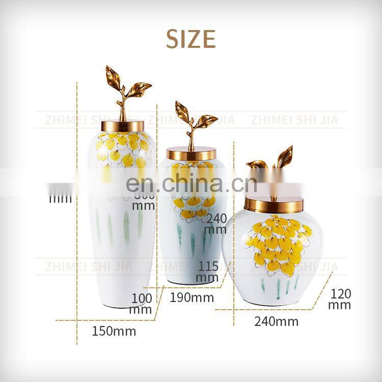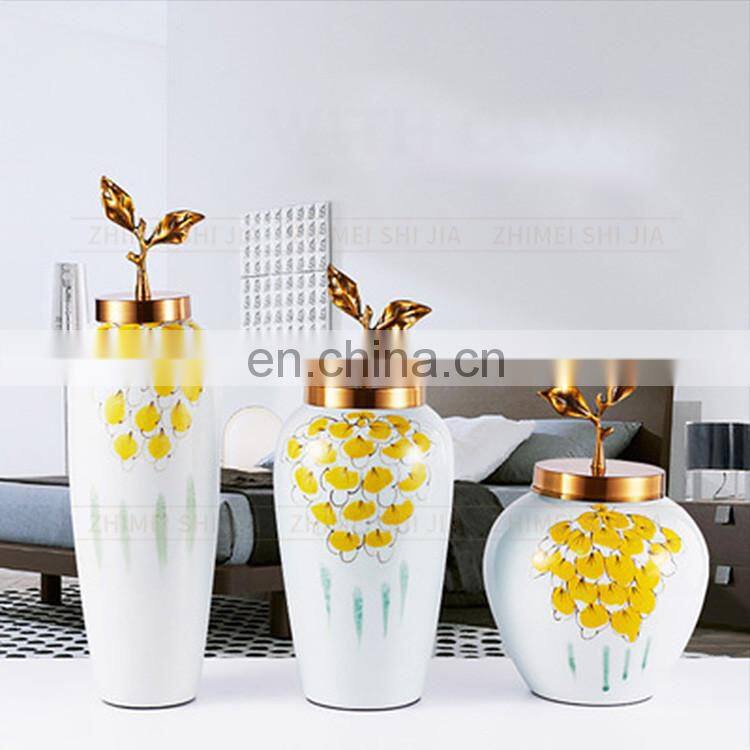China Yellow Decorative Modern Brass And Porcelain Vase