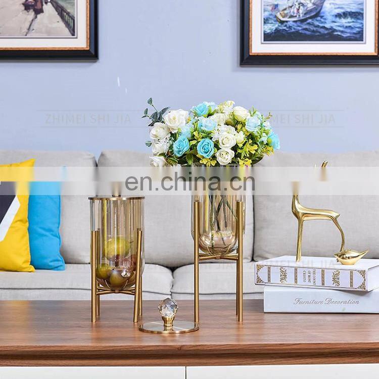 Large Size Luxury Gold Frame Glass Flower Vase
