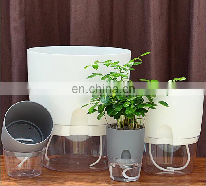 Good Quality Automatic Water Indoor Plant Pot Transparent Flowerpot Touming Cotton Rope Flower Pots Plastic Decoration