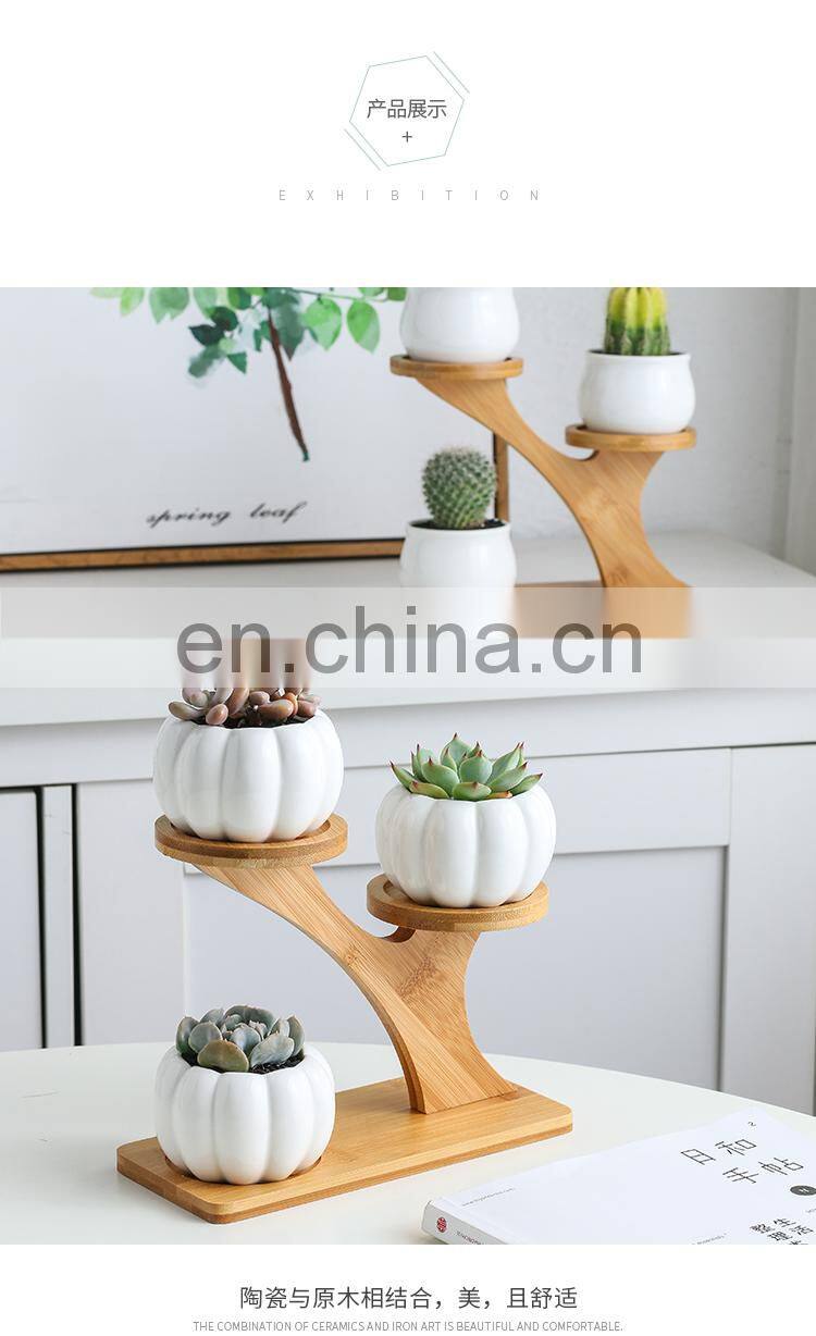 Round Desktop Decoration Ceramic Succulent Planter Plant Flower Pots Indoor Wood
