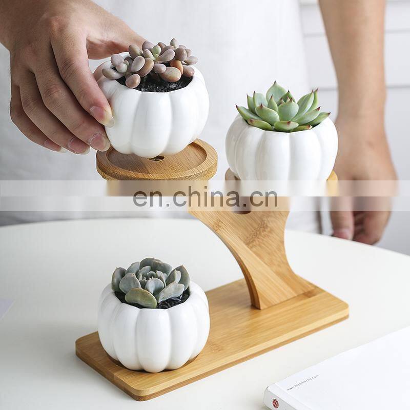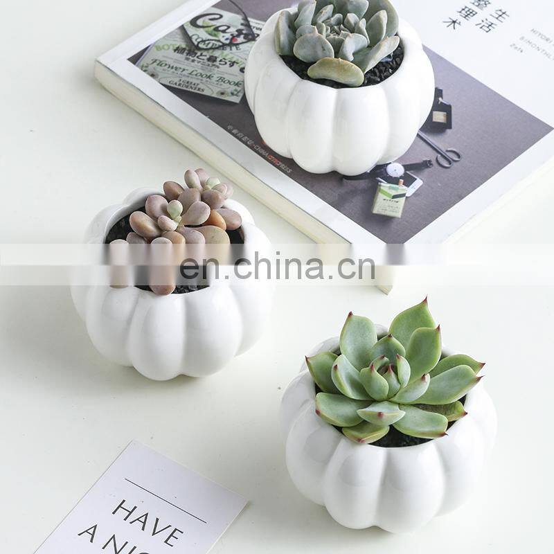 Home Decor Accessories Factory Direct Sale White Ceramic Flower Pot Stand Bonsai Pumpkin Shape Indoor Plant Pots