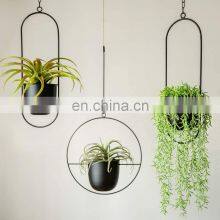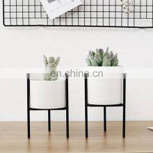 Garden Gift Ceramic Plant Pot With Iron Frame Stand Modern Round Decorative Ceramic Flower Pot