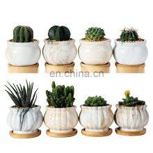 Nordic Marble Luxury Small Ceramic Succulent Planter Pot With Bamboo Tray