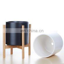 Nordic Garden Indoor Flowerpot Flower Plant Ceramic Macetas Planters Pots With Wood Stand Holder