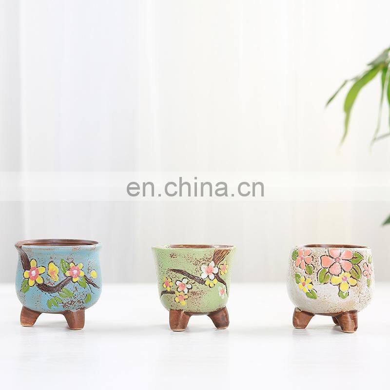 Wholesale Japanese Hand Painted Mini Tiny Table Pot Cactus Ceramic Flower Pots For Succulent Plants