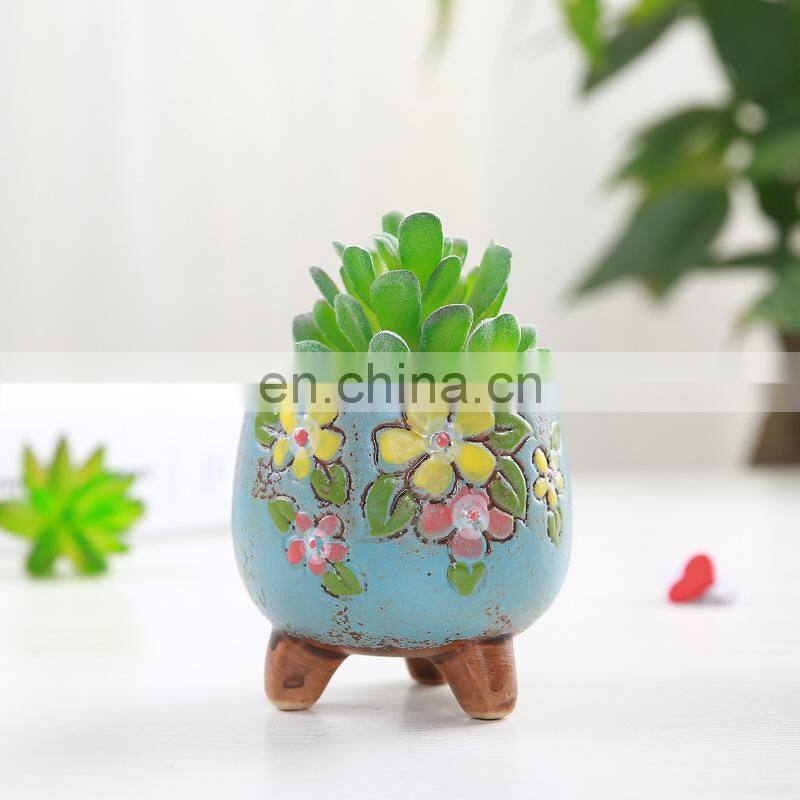 Colorful Succulent Flowerpot Clay Vase Korean Hand-painted Flower Flowerpot With Floral Designs
