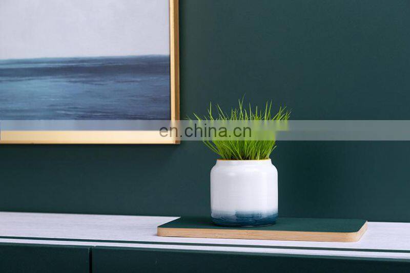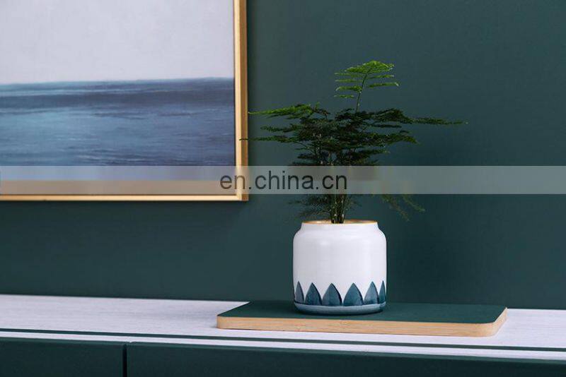 Top Fashion Decorative Pots Rectangle Metal Modern Garden Cheap Ceramic Succulent Smart Face Flower Pot With Bamboo Tray