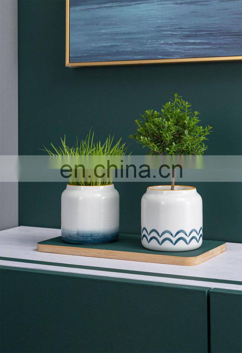 Nordic Modern Decorative Plant Pots Ceramic Cylinder Succulent Planter Plant Flower Pot With Tray Drainage Hole