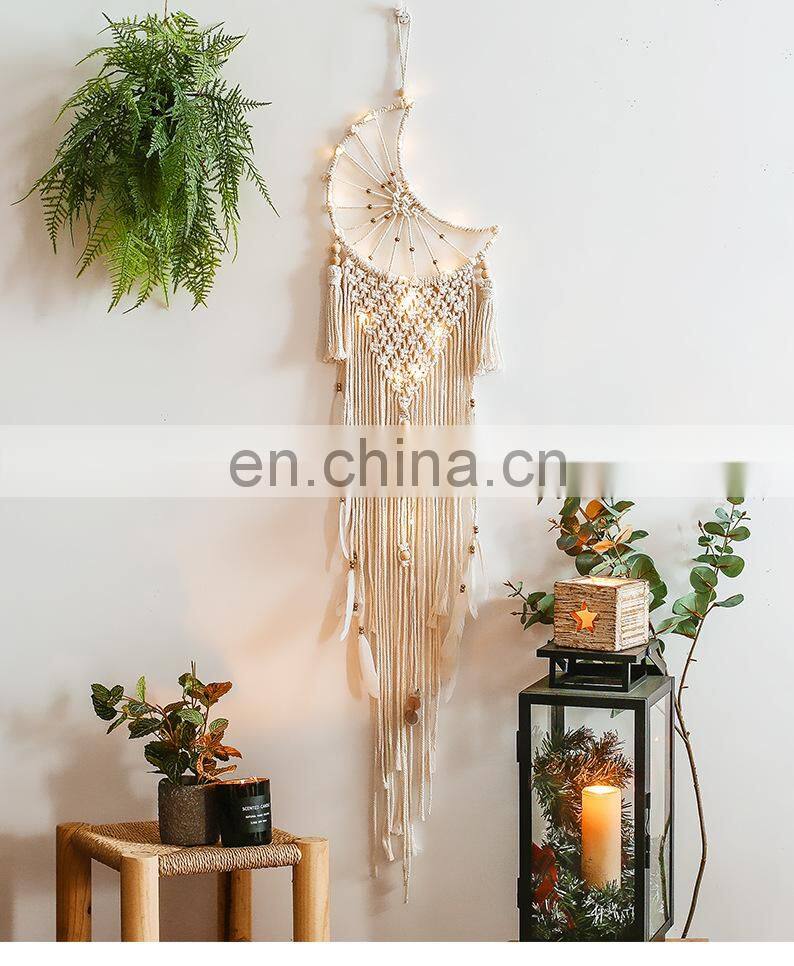Ins New Wholesale Beads Dream Catcher Moon Feather Macrame Ring Diy Kit Woven Dream Catcher With Lights ZXS-DC001 Zhenxishi Love