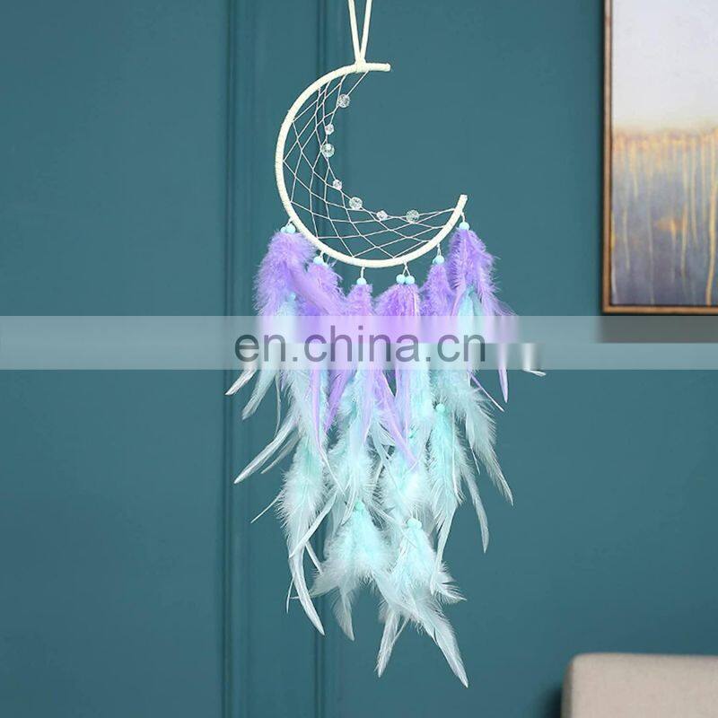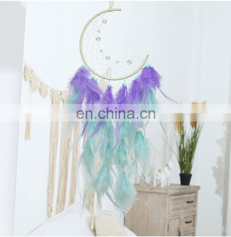 Wholsale Moon Star Colorful Feather Dreamcatcher Keychain Small Mini Dream Catcher For Car