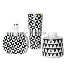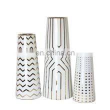 Geometric White Black Gold Vase En Verre Tall Art Ceramic Decorative Vase For Living Room