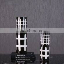 New Design Minimalist Porcelain Black And White Grid Ceramic Table Centerpiece Flower Vase Geometric Artificial Vase