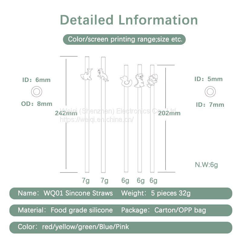 Home > Products > Feeding Tableware > Weiqi Manufacturer BPA Free 5 Pack Refreshing Cartoon Silicone Straws
