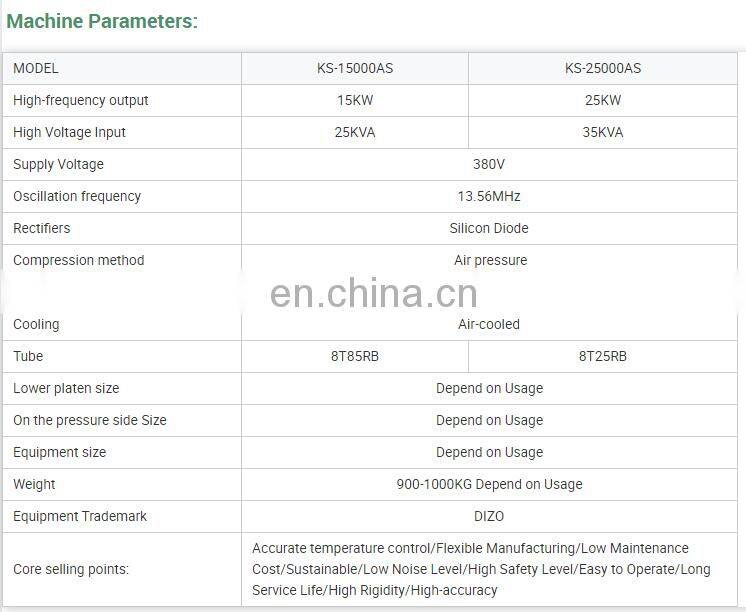 Standard ultrasonic high frequency welding machine is mainly suitable for processing PVC, TPU, EVA or mixed materials containing 20%PVC, like PVC rubber boots, water pants, leather embossing, luggage, electric car mat, three-dimensional packaging bags, blister shell, hot water bag, medical supplies, stationery supplies, oxygen bags etc.