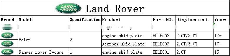 Home > Products > skid plate > Recovery off Road Accessories Engine Splash Shield for Land Rover Velar