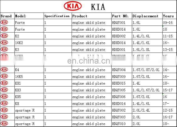 Home > Products > skid plate > Alloy Steel Engine Splash Shield Front Under Armour Protection Skid Plate for 2016- KIA k5 1.6T/2.0L
