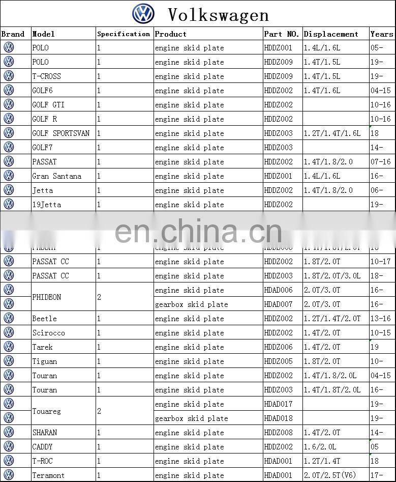 Wholesale Accesorios vw Skid Plate Engine Guard Protective Shield Cover for Volkswagen POLO Gran Santana 1.4L/1.6L