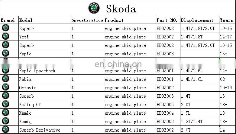 Home > Products > skid plate > Engine Covers Car Front Center Engine Protection Splash Shield Panel for Skoda Superb Yeti Superb Octavia Superb Derivative