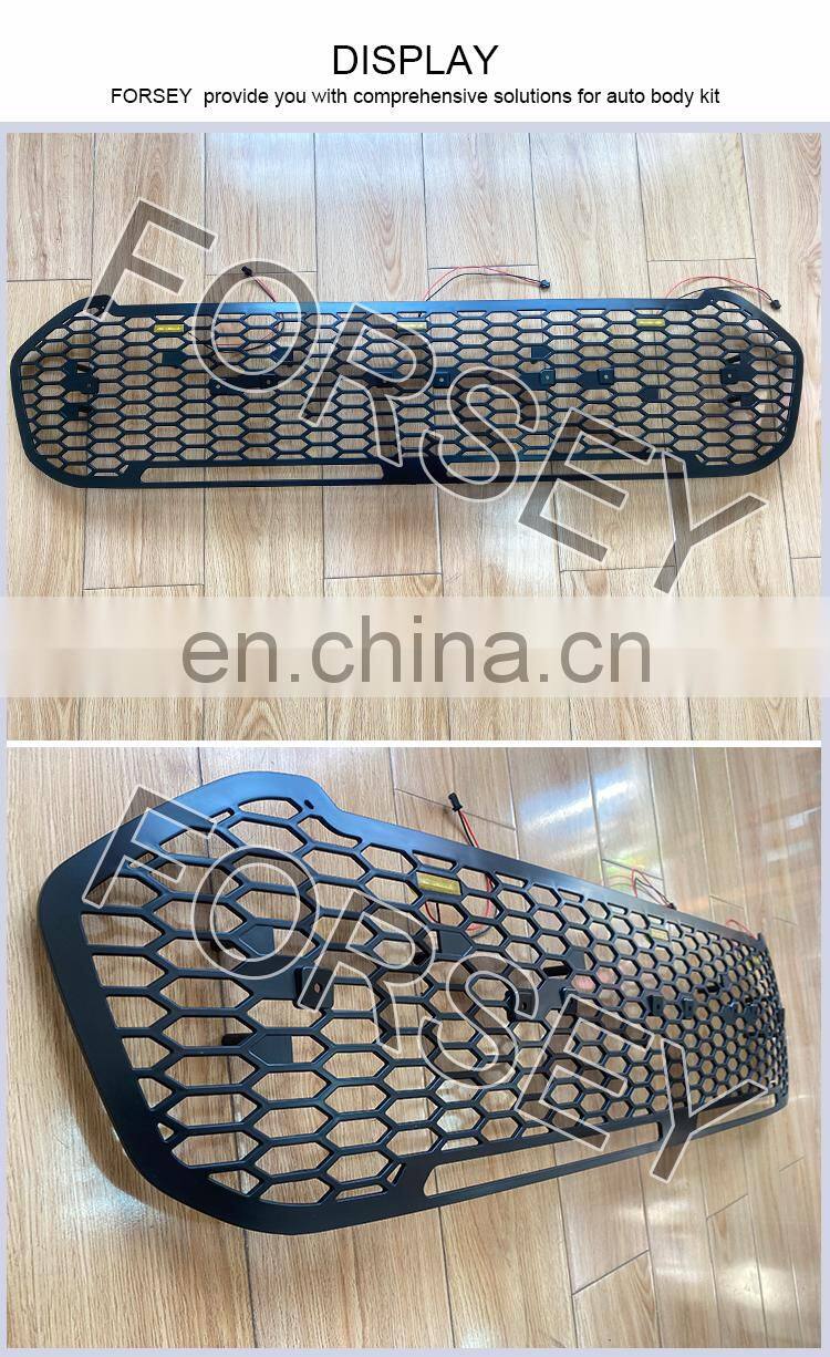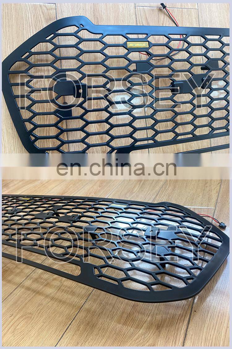 Off-road 4X4 Accessories Paint ABS Grilles Matte Black Front Grill With LED For F150 2021 Raptor Style