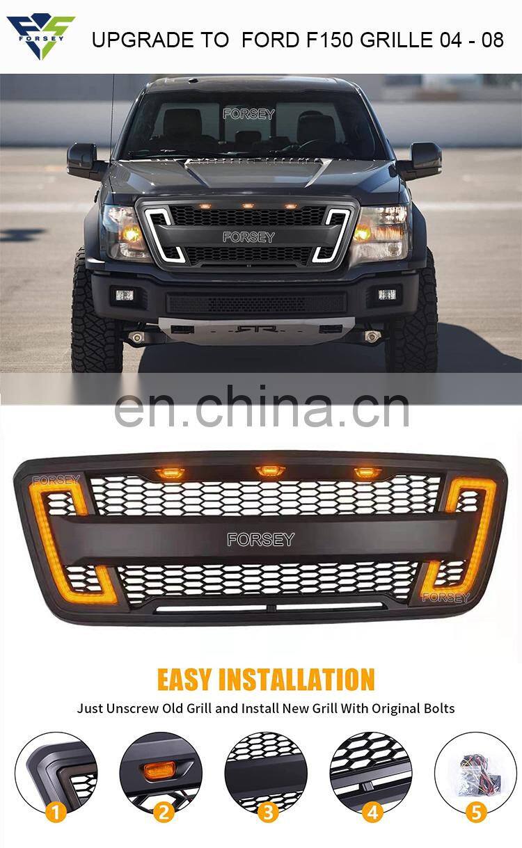 Front Car Grille for F150 2004-2008 4x4 Modified Parts Plastic Bumper Grille With LED