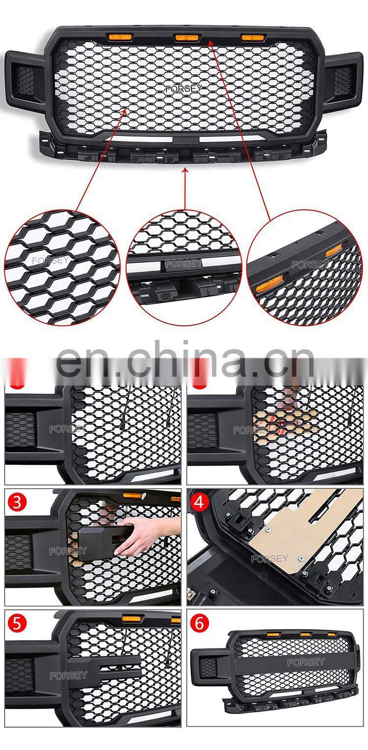 Pick up Parts ABS Front Grille With LED Light For F150 Accessories 2018+ Raptor Style Auto Parts Grille for F-150