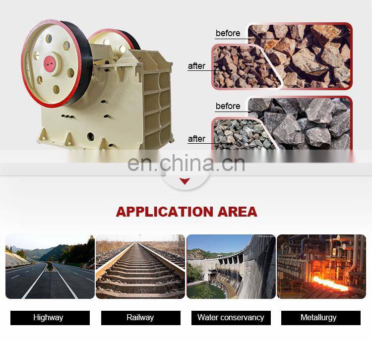 Jaw crusher is widely used in various industries, such as mining, road and railway construction, building construction,water conservation and chemical industry etc. It could crush kinds of minerals and rocks with compression strength less than 320MPa,
