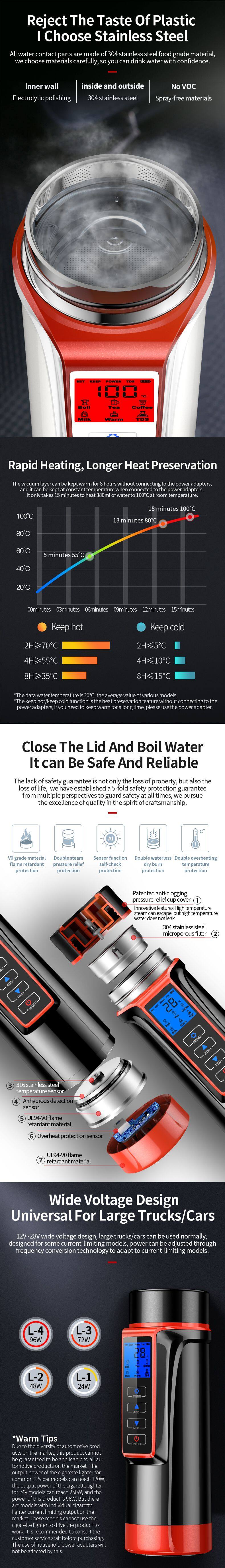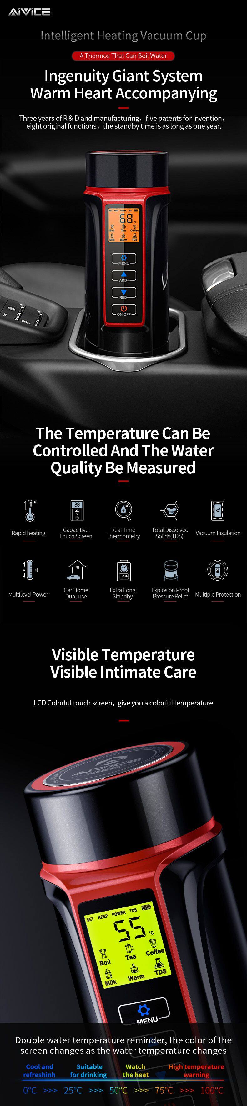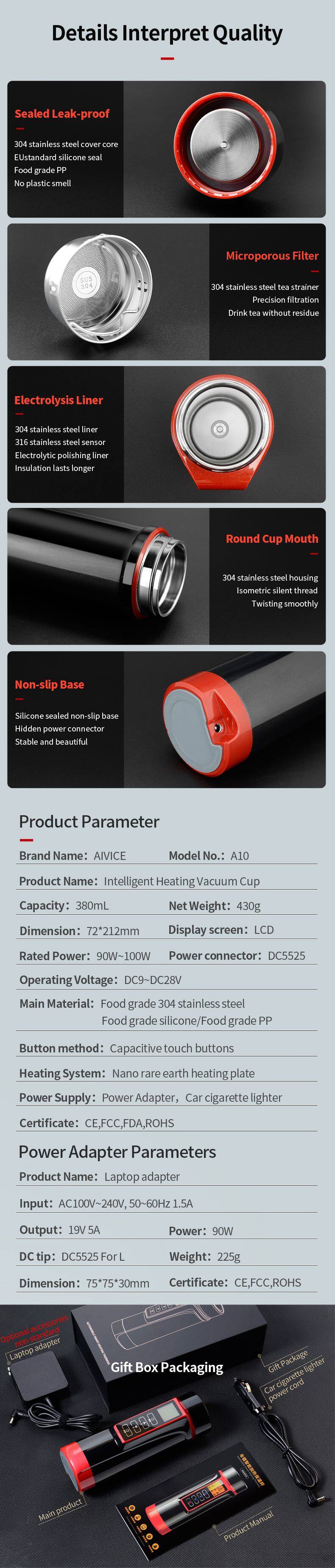 304 Stainless Steel 380ML Car Smart Heating Cup 12V-24V General Purpose