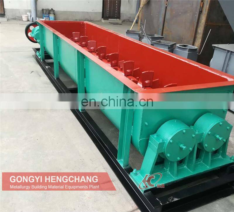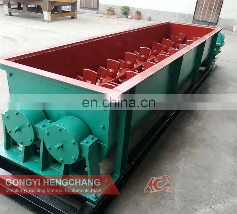 Double shaft mixer is mainly used to mix the shale, coal gangue, and slag etc throughly by its two screw blade shafts. The main wearing parts is alloy wear-resistant material, and the mixing shaft has been heat treated, making the machine have a long service life and reducing its cost. Double shaft mixer is also applicable to the steaming flyash brick production line, the aerated concrete block production line, and the clay brick vacuum extruder production line, chemical and mineral industry etc.