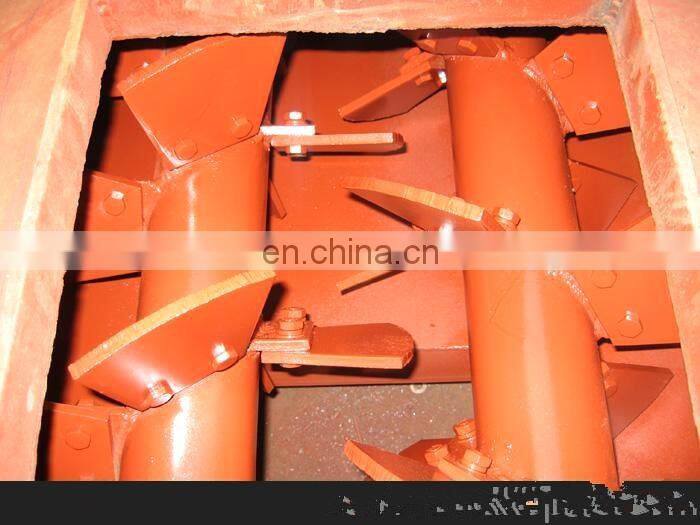 Double shaft mixer is mainly used to mix the shale, coal gangue, and slag etc throughly by its two screw blade shafts. The main wearing parts is alloy wear-resistant material, and the mixing shaft has been heat treated, making the machine have a long service life and reducing its cost. Double shaft mixer is also applicable to the steaming flyash brick production line, the aerated concrete block production line, and the clay brick vacuum extruder production line, chemical and mineral industry etc.