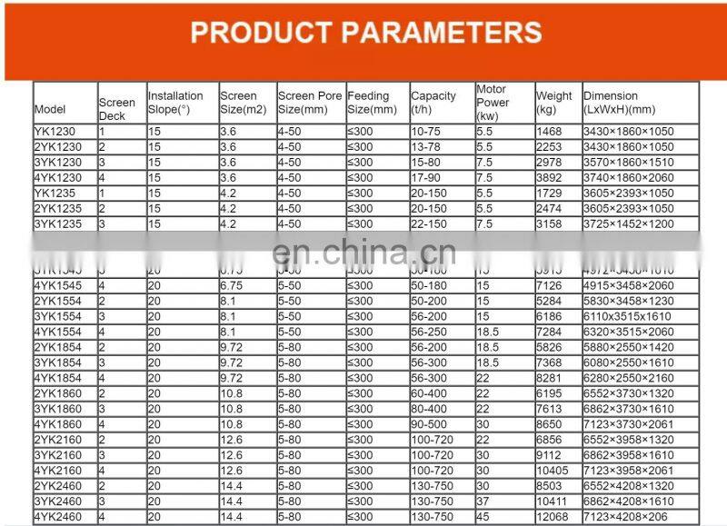 Vibrating Screen is of high vibration intensity. Under the same specifications, it has larger processing capacity and higher screening efficiency compared to traditional screens. It is particularly applicable to heavy type, middle type and fine screening operations, and it is the ideal screening equipment for primary crushing, secondary crushing and finished materials.