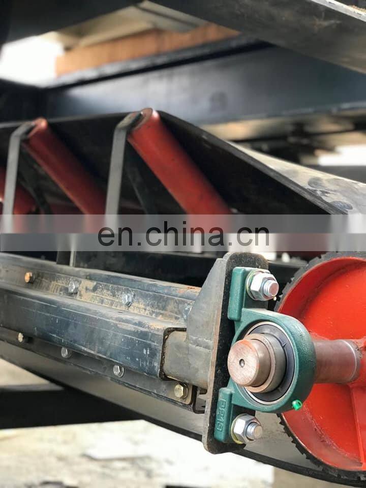 The belt conveyor is mainly composed of two end rollers and a closed conveyor belt tightly sleeved on it . The roller that drives the conveyor belt to rotate is called the drive roller (drive roller); the other roller that only changes the direction of the conveyor belt is called the redirecting roller. The driving roller is driven by the motor through the reducer, and the conveyor belt is driven by the friction between the driving roller and the conveyor belt. The driving drum is generally installed at the discharge end to increase the traction and facilitate dragging. The material is fed from the feeding end and falls on the rotating conveyor belt, which is transported to the discharge end by the friction of the conveyor belt and discharged.