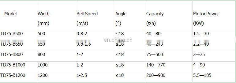 Technical Parameters of magnetic pulley belt conveyor for stone crusher