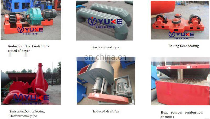 The sawdust rotary dryer mainly consists of drum barrel, roll ring, wheel gear, lifting board, chain, reduction gears, and motor etc parts. It is matched with conveyor, dust remover and draught fan etc equipment.
