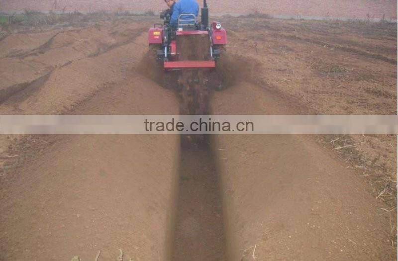 This single chain tractor trencher is widely used in irrigation and water saving irrigation project, buried pipeline and cable laying engineering, yam planting and harvesting, vineyard fertilization and ginger, spring onion, sugarcane crop rectangle groove excavation. Harvest machine special yam planting specially developed for yam planting, harvesting, professional, replacement of different tools can be used for planting and harvesting of yam and other works of trench excavation.