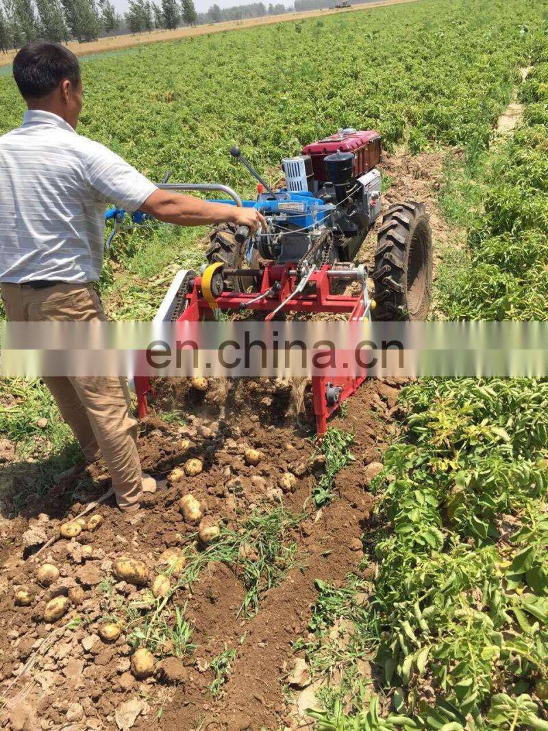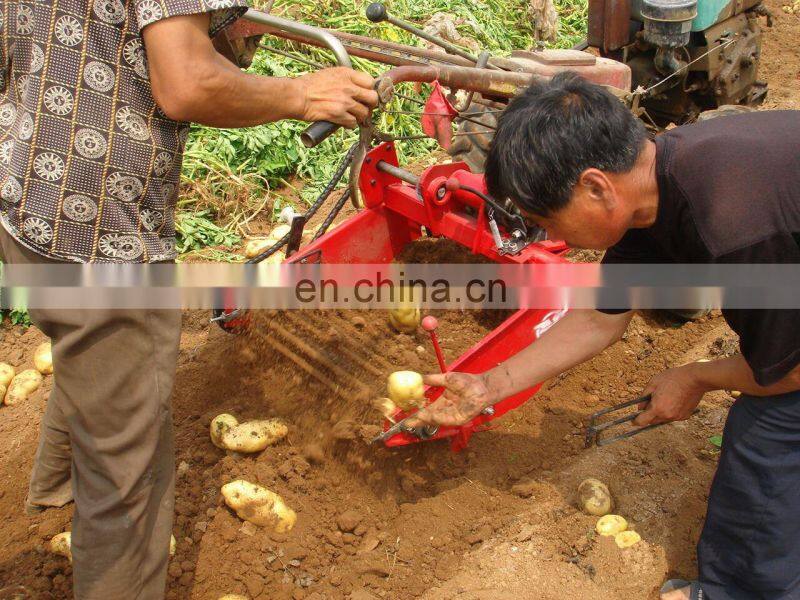 This machine can use to harvest potato,it also can be used to harvest garlic,sweet porato,carrot,peanuts and other crops.With high capacity,low broken,and long life span,it can run fast without trembling and blocking by the grasses.Beside,it can get rid of the mulching film automatically.