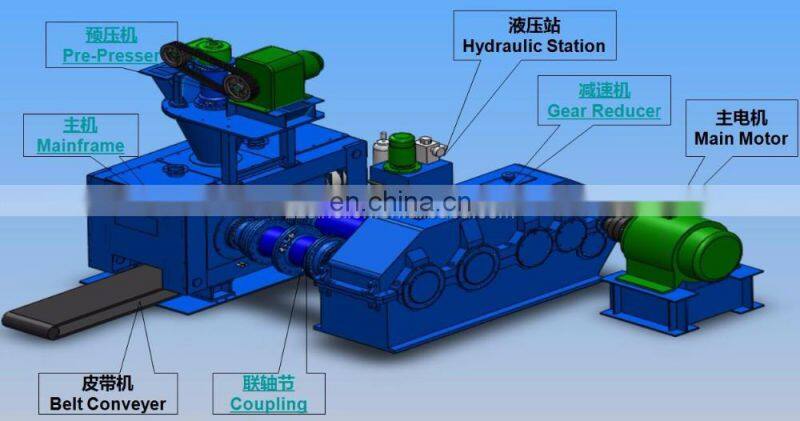 3.Pre-pressing adopts the speed-adjusting motor; all wear-out parts are welded with wearing-resistance alloy to improve working performance and service life;