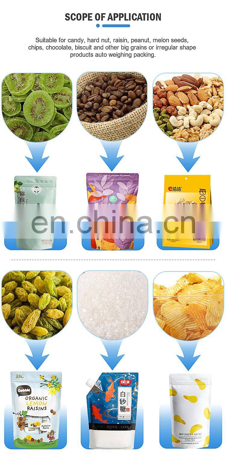 Eating Salt Fresh Fruit Standing Pouch Pack Machine Automatic Horizontal Multi Head Weigher Granule Biscuit Packing Machine