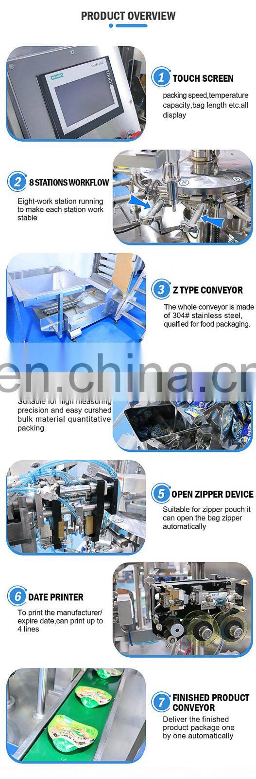 Filling Plastic Bag Sealing Packaging Nuts Plantain Chips Automatic Doypack Onion Dried Fruit Packing Machine
