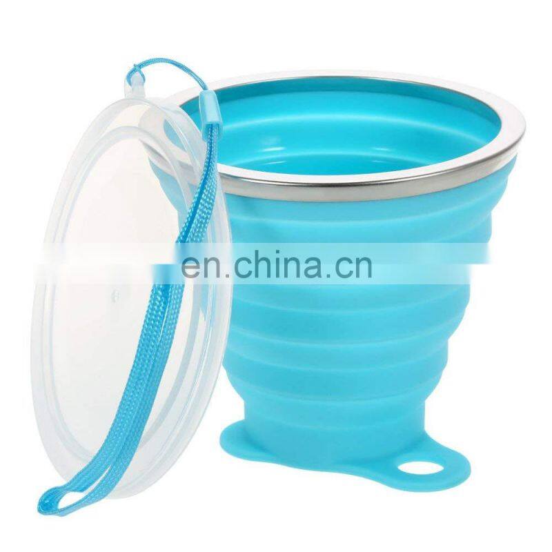 Reusable Camping Silicone Collapsible Silicone Cup Rubber Coffee Cup With Lids Foldable Coffee Cup