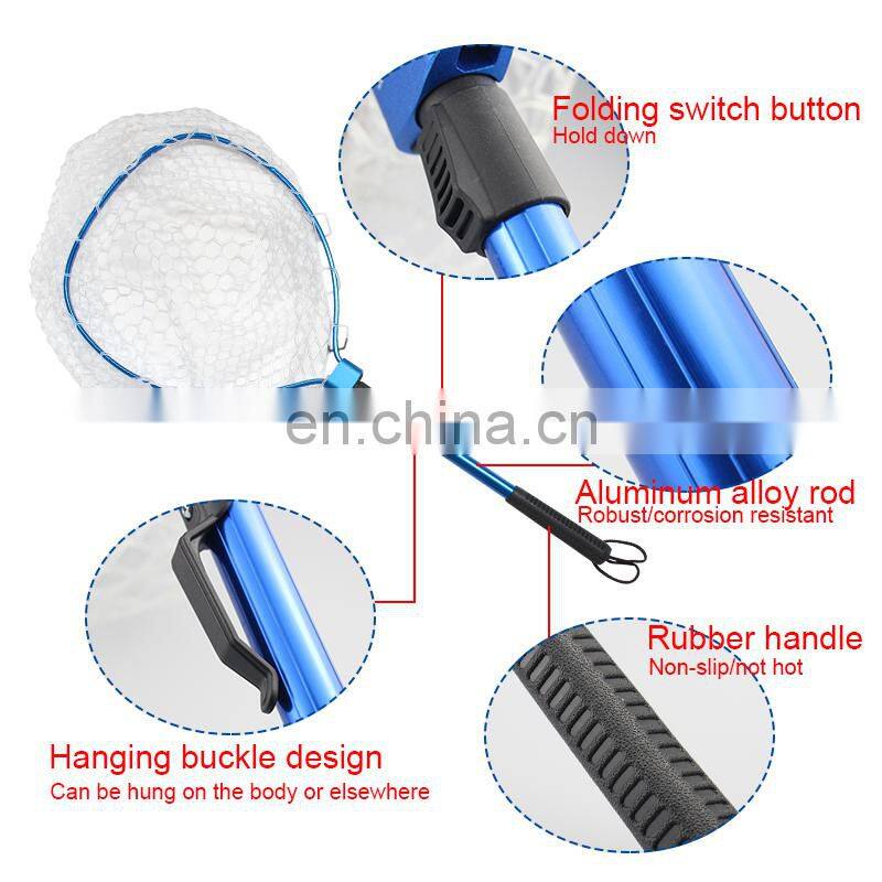 Folding Aluminum Alloy Telescopic Rod Handle Pole Nets Rubber Fish Landing Nets