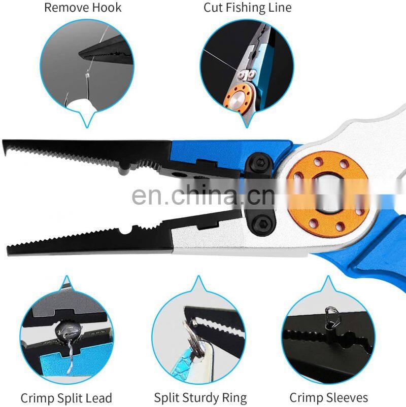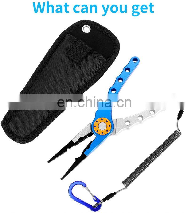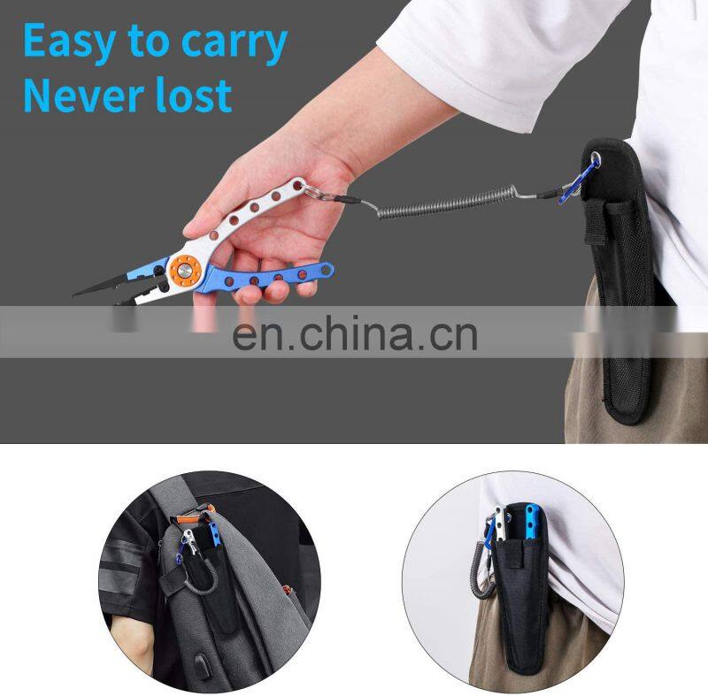 Wholesale Fishing Pliers Aluminum Braid Cutters Split Ring Pliers With Sheath and Lanyard