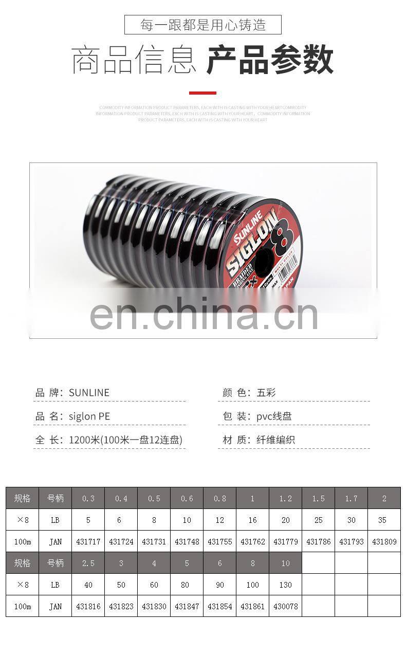 Wholesale Sunline Siglon 100m PE*8 Multi-colored 110 Yards PE Braided Fishing Line