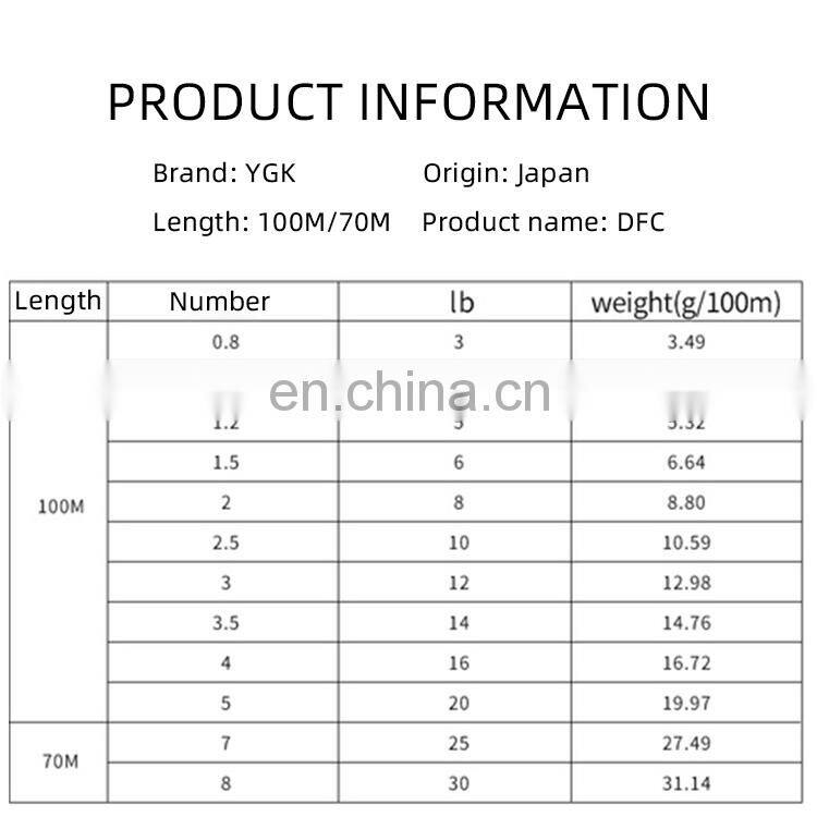 Home > Products > Fishing Line > Japanese Imported YGK DFC 70m 100m Flurocarbon 100% Fishing Lines Florocarbon Fishing Line