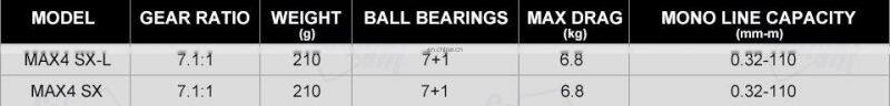 Abu Garcia Brand MAX4 SX Long Casting Max Drag 6.8kg Gear Ratio 7.1:1Baitcasting Reels
