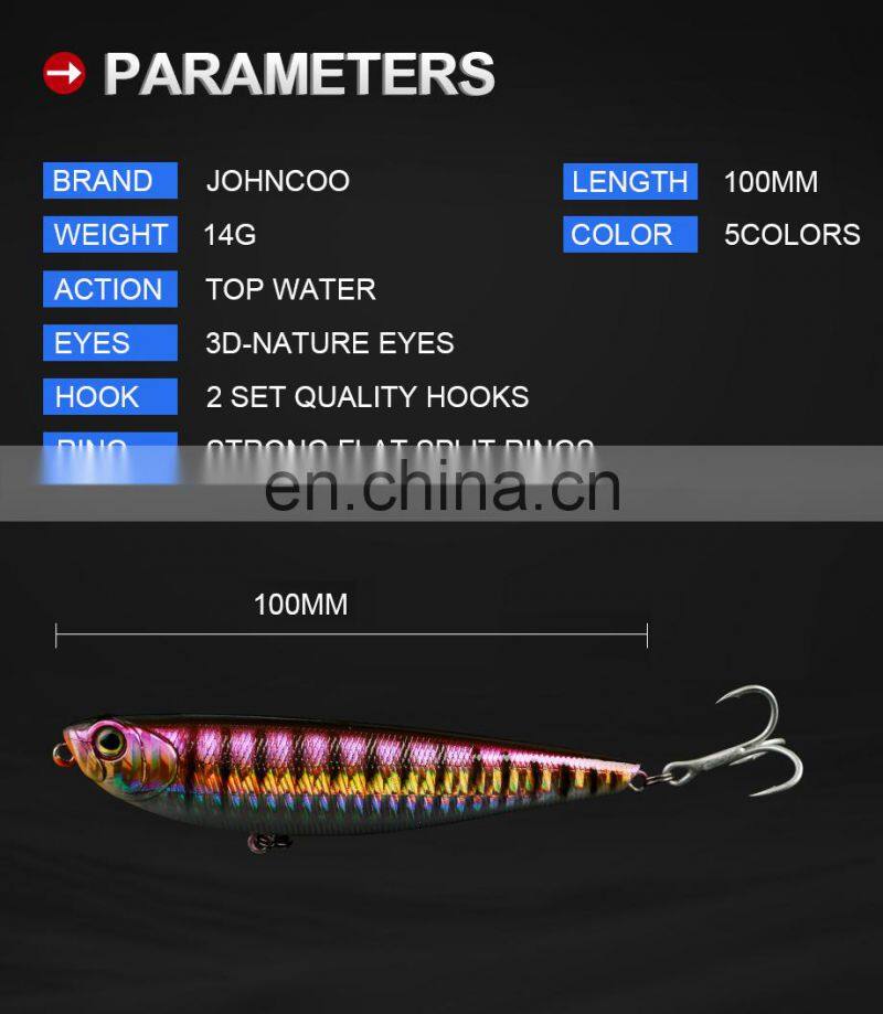 JOHNCOO 100mm 14g Hard Plastic Bait Pencil Fishing Lure Floating popper Lures