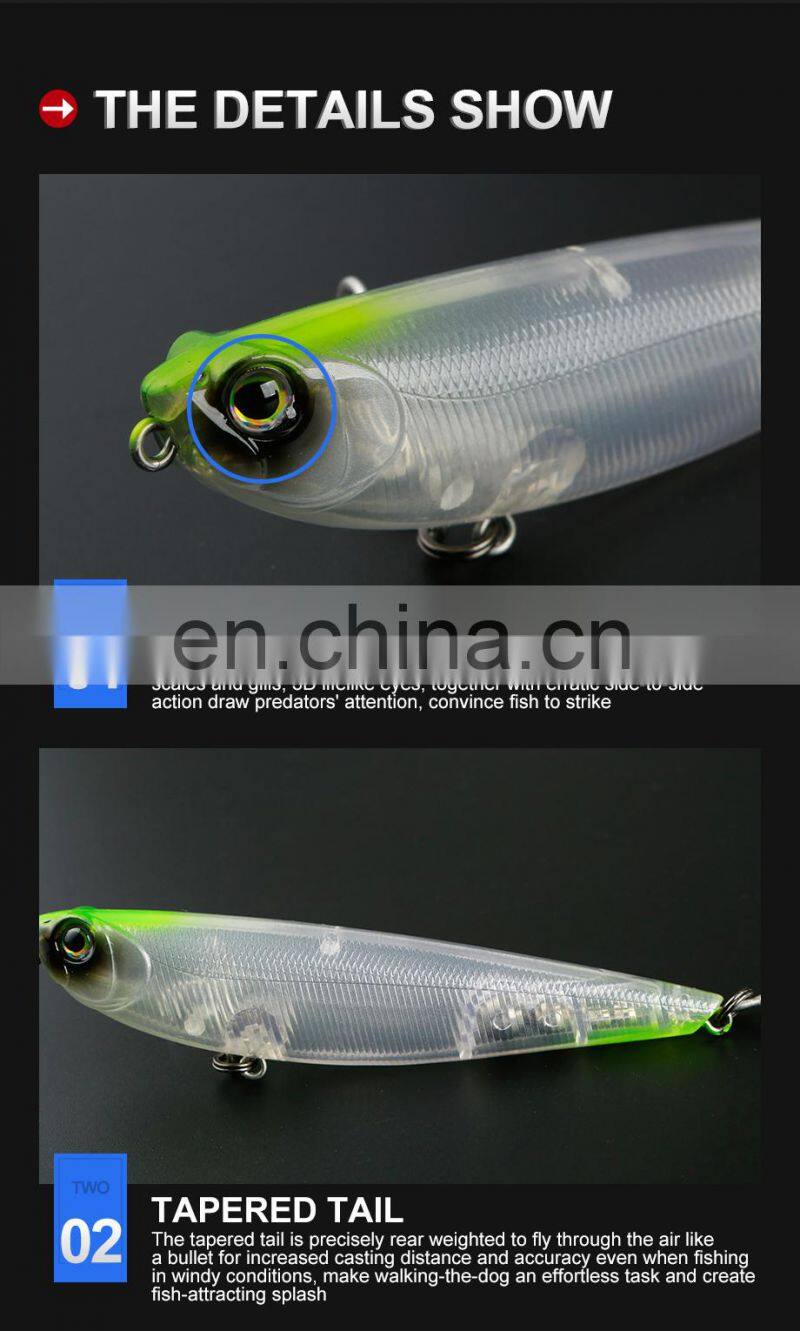 JOHNCOO Pencil Fishing Lures Topwater Wobblers 100mm 18g Surface Walk The Dog Bass Pike Sparrow Hard Bait WTD Popper