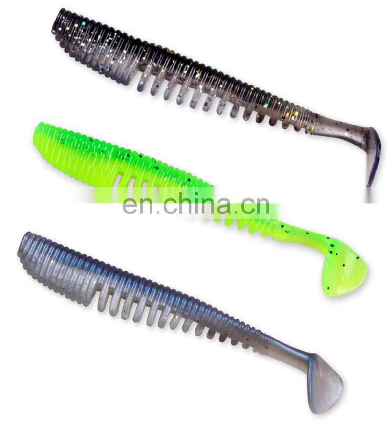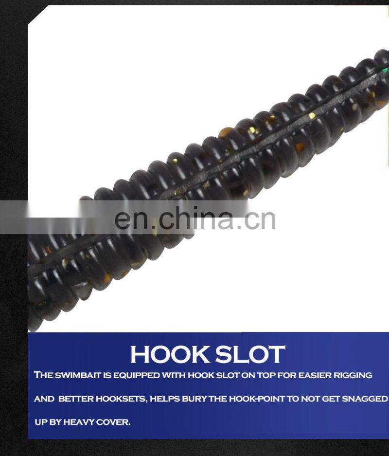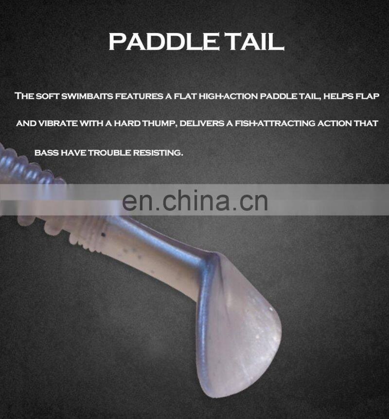 Ultra Lifelike Paddle Tail Swimbaits:soft baits lures has bright luster and sequins, flashes underwater. The soft swimbaits features a flat high-action paddle tail, which strengthen the play of the lure, helps flap and vibrate with a hard thump, Provides more vivid swings, making it easier to attract fish.